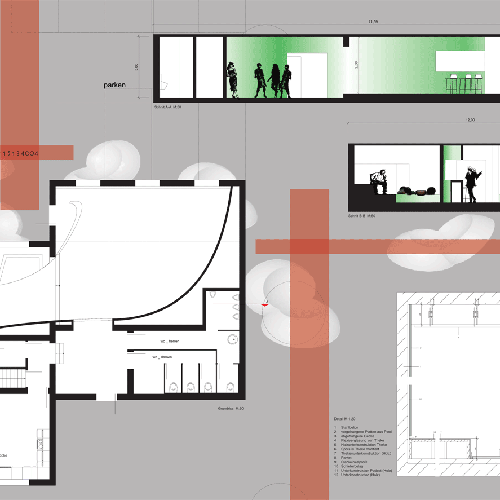 Im Zuge eines Ideenwettbewerb sollte ein Nachclub (Lounge) mit verschiedenen Aufenthaltsbereichen geschaffen werden.
